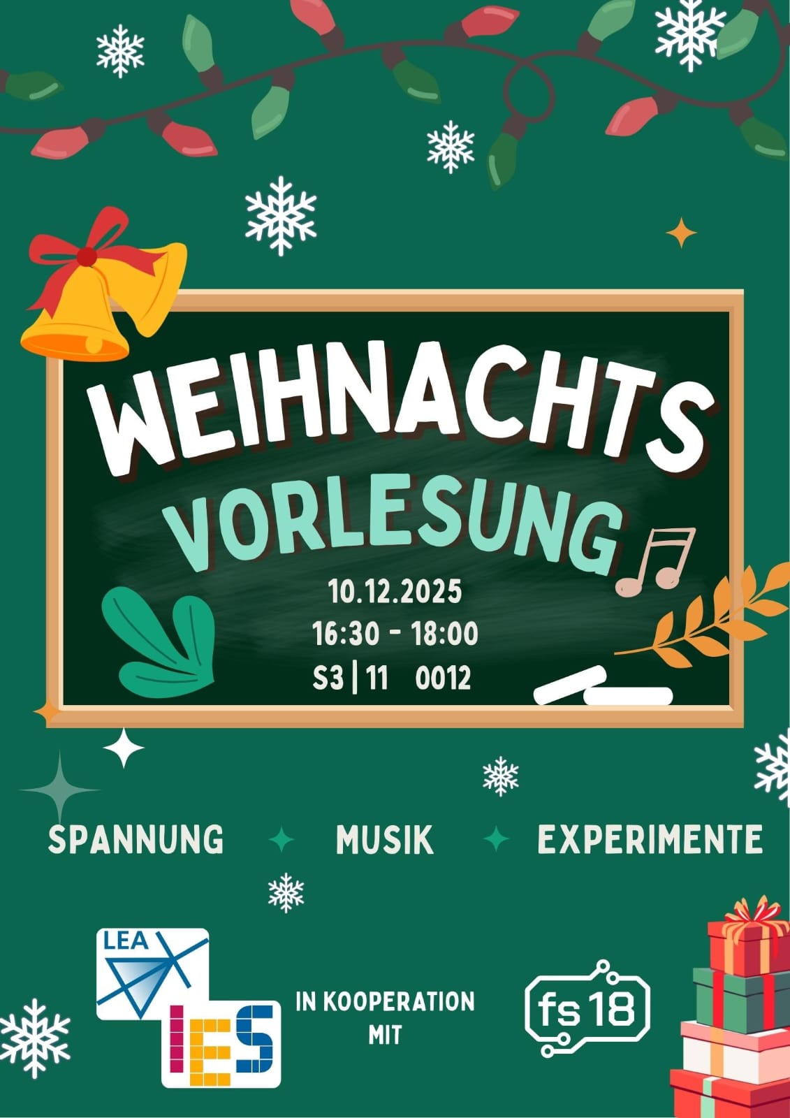 Am 10.12 findet unsere 1. Weihnachtsvorlesung ab 16:30 in S3|11 0012 statt. Komm gerne vorbei!